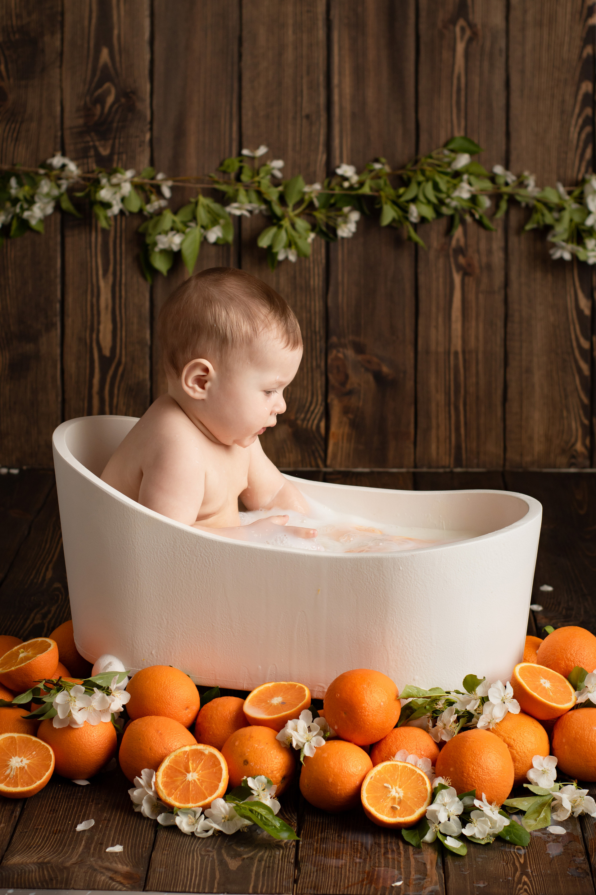 Фотосессия малыша до года, фотосессия в ванночке, фотосессия в ванночке с апельсинами, фотосессия в стиле минимализм, фотосессия малыша, апельсины, фрукты,  фотосессия малыша до года Омск, годик, фотосессия в студии, фотосессия в студии Омск, фотосессия малыша в ванночке с апельсинами, фотосессия малыша с апельсинами