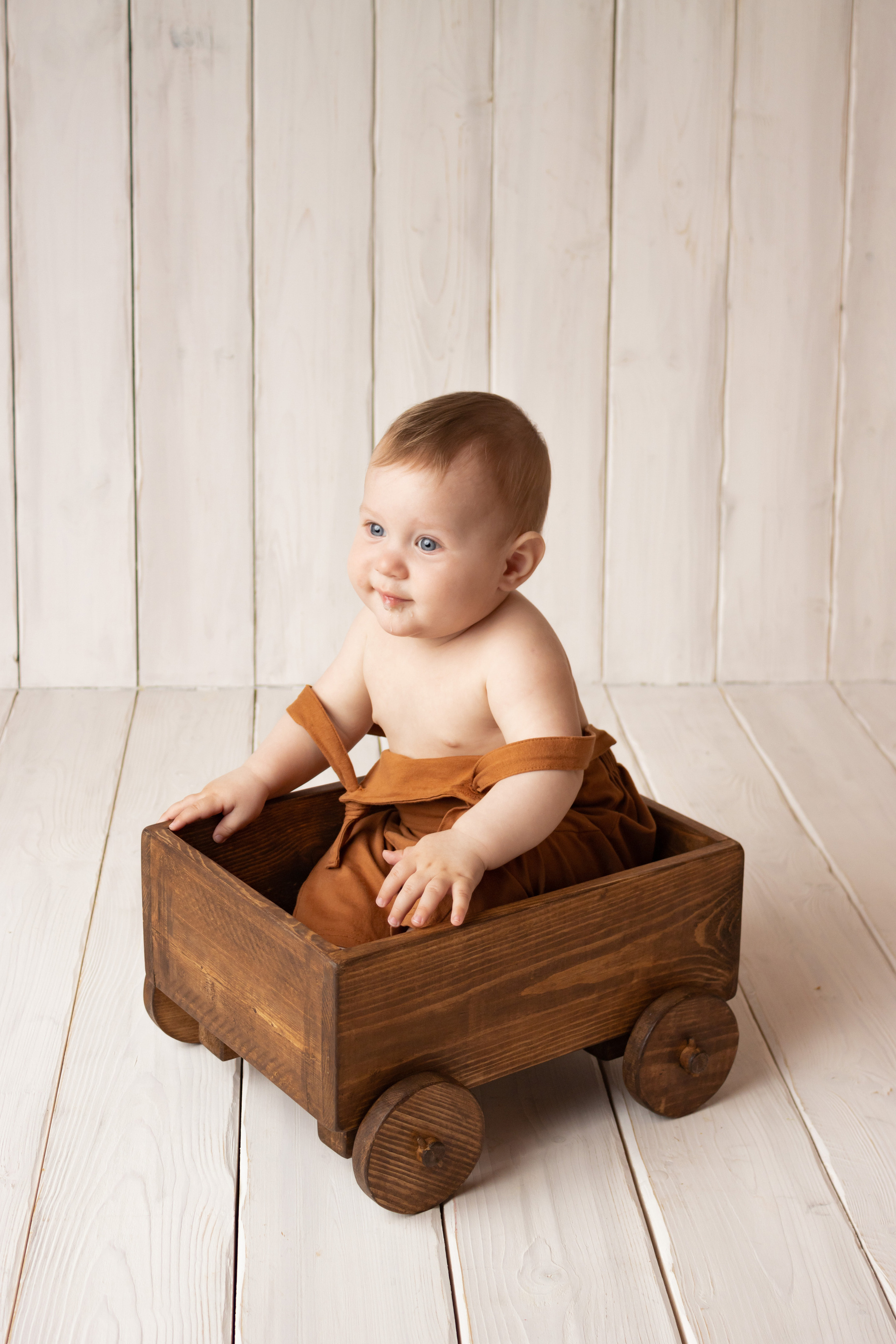 Фотосессия малыша до года, фотосессия в деревянной тележке,  фотосессия малыша в тележке, фотосессия в стиле минимализм, фотосессия малыша до года Омск, годик, фотосессия в студии, фотосессия в студии Омск, тележка деревянная